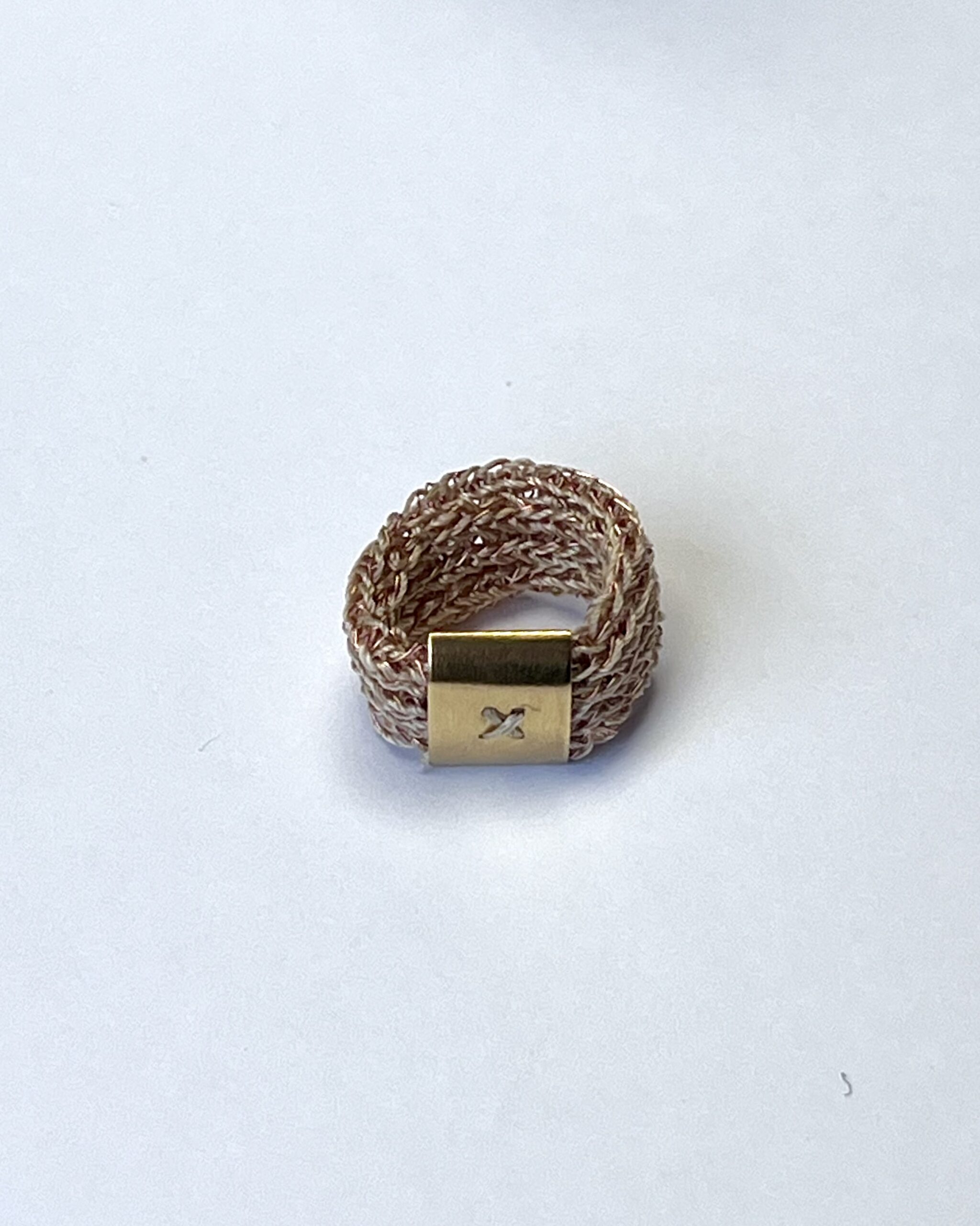 Une bague légère en maille de cuivre émaillé et fil de couleur Nude, entièrement fait main.