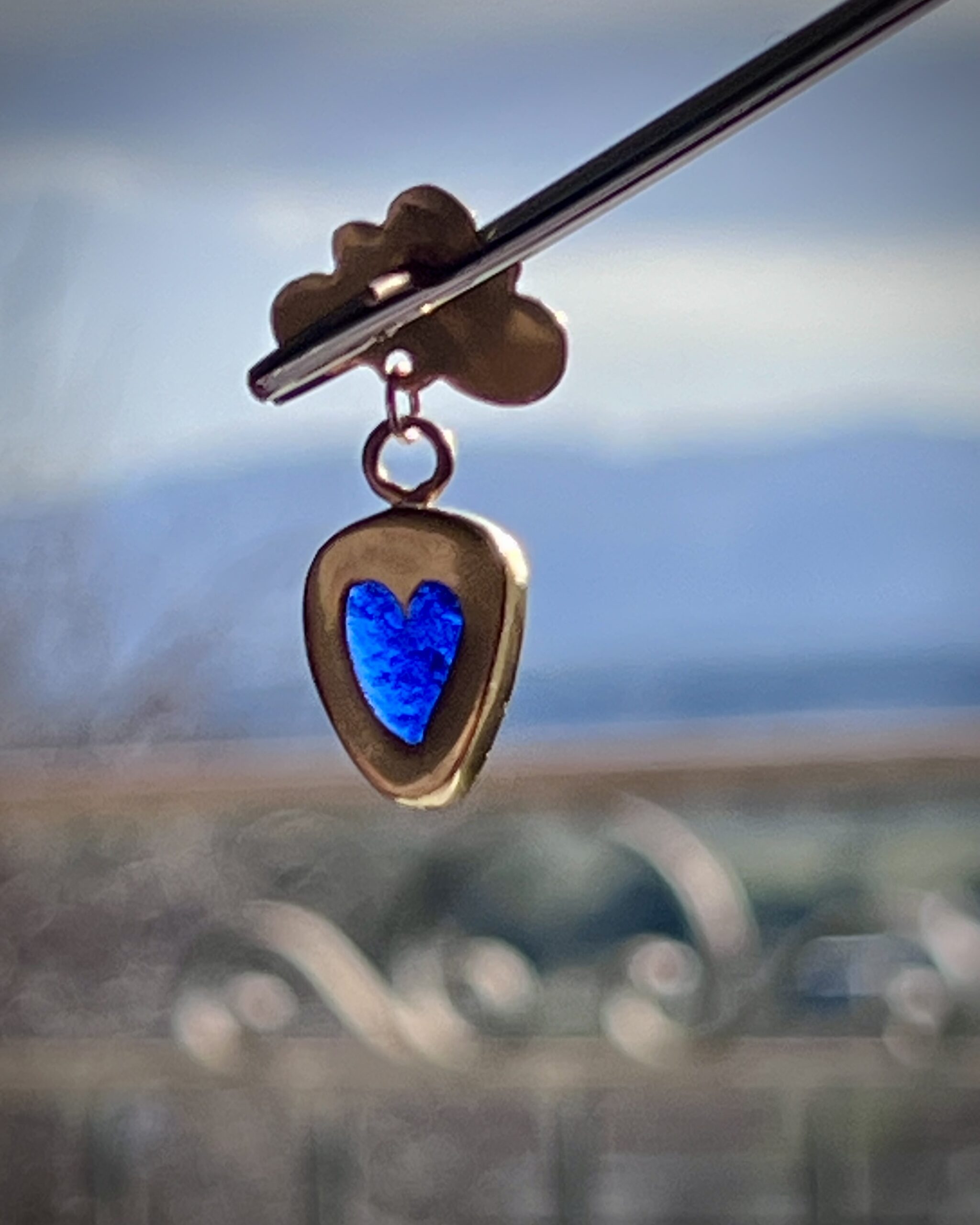 Au dos, un petit coeur est découpé dans le métal afin de laisser passer la lumière au travers de la goutte de verre.